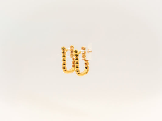 21K Gold Mini Beaded Square Huggies Earrings
