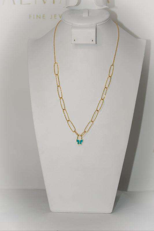 21K Gold Blue Butterfly Clip Necklace