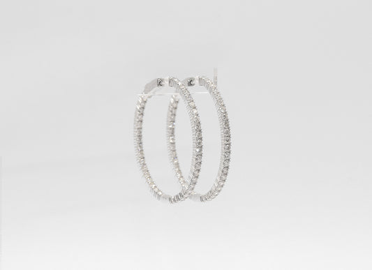 14K White Gold 2.58 Carat Diamond Inside Out Hoop Earrings