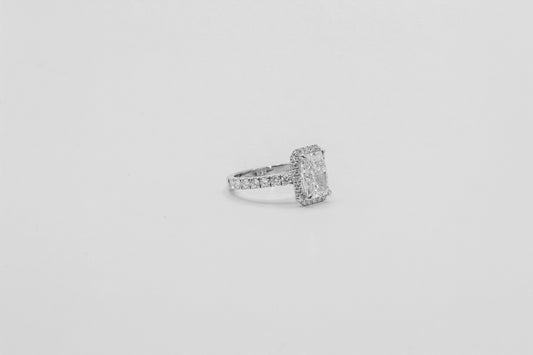14K White Gold 4.04 Carat Radiant Halo Diamond Solitaire Ring