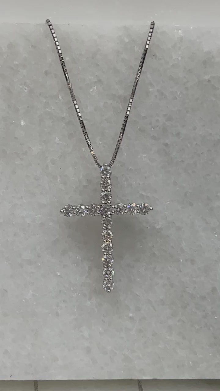 .62 Carat Diamond Cross Necklace with 18” 14k Gold Box Chain si f color