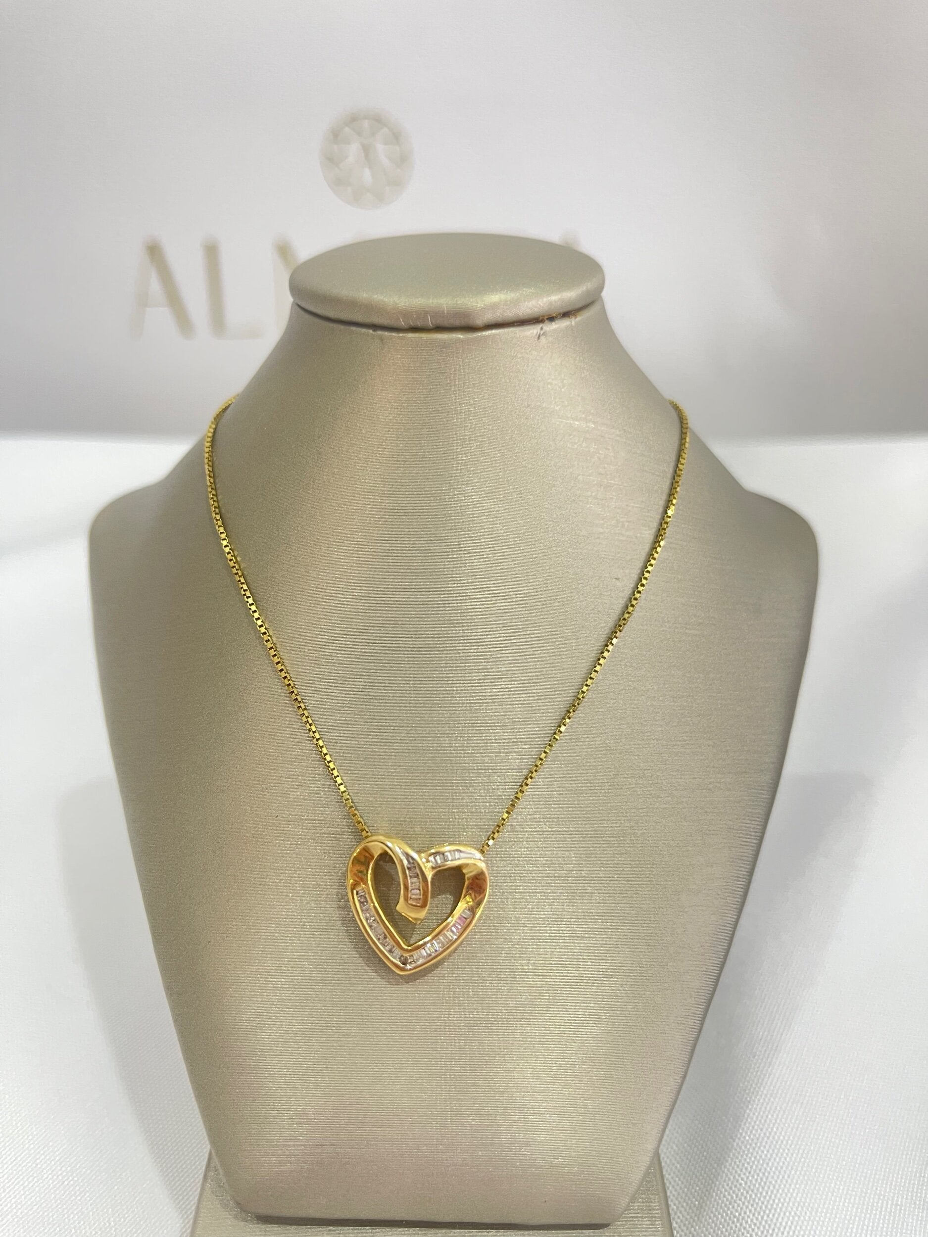 14k gold baguette heart necklace