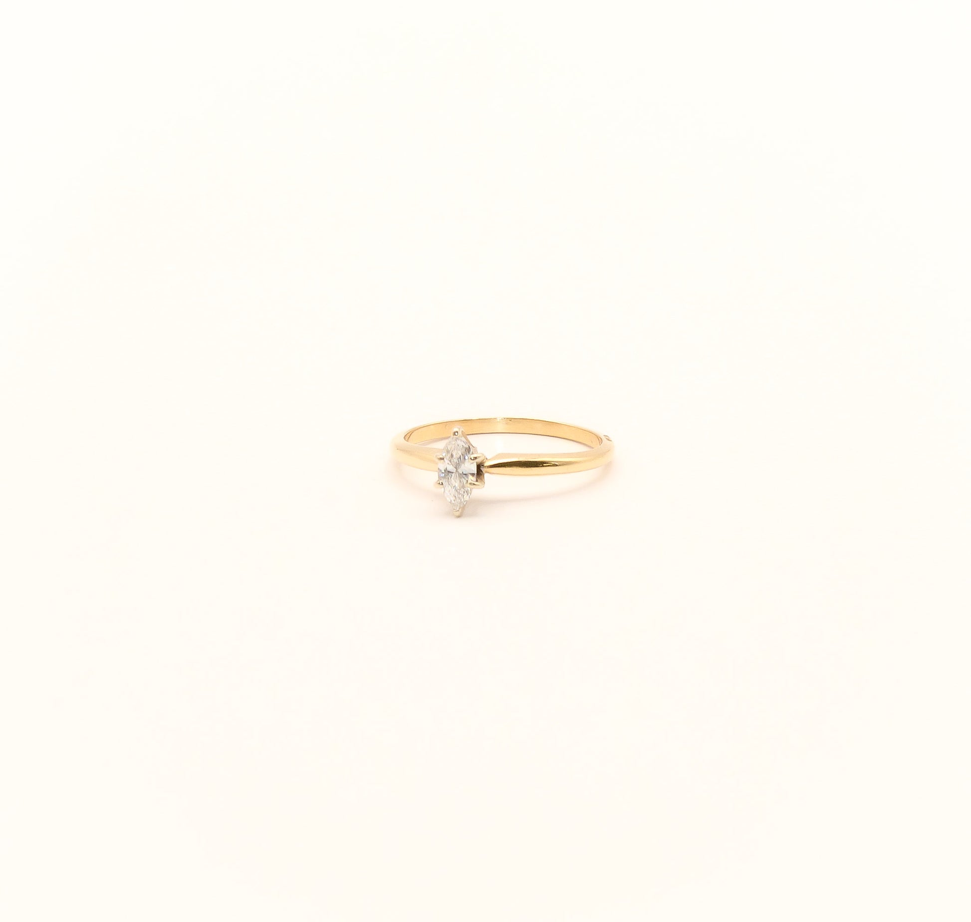 14K Gold Marquise Cut Diamond Solitaire Ring