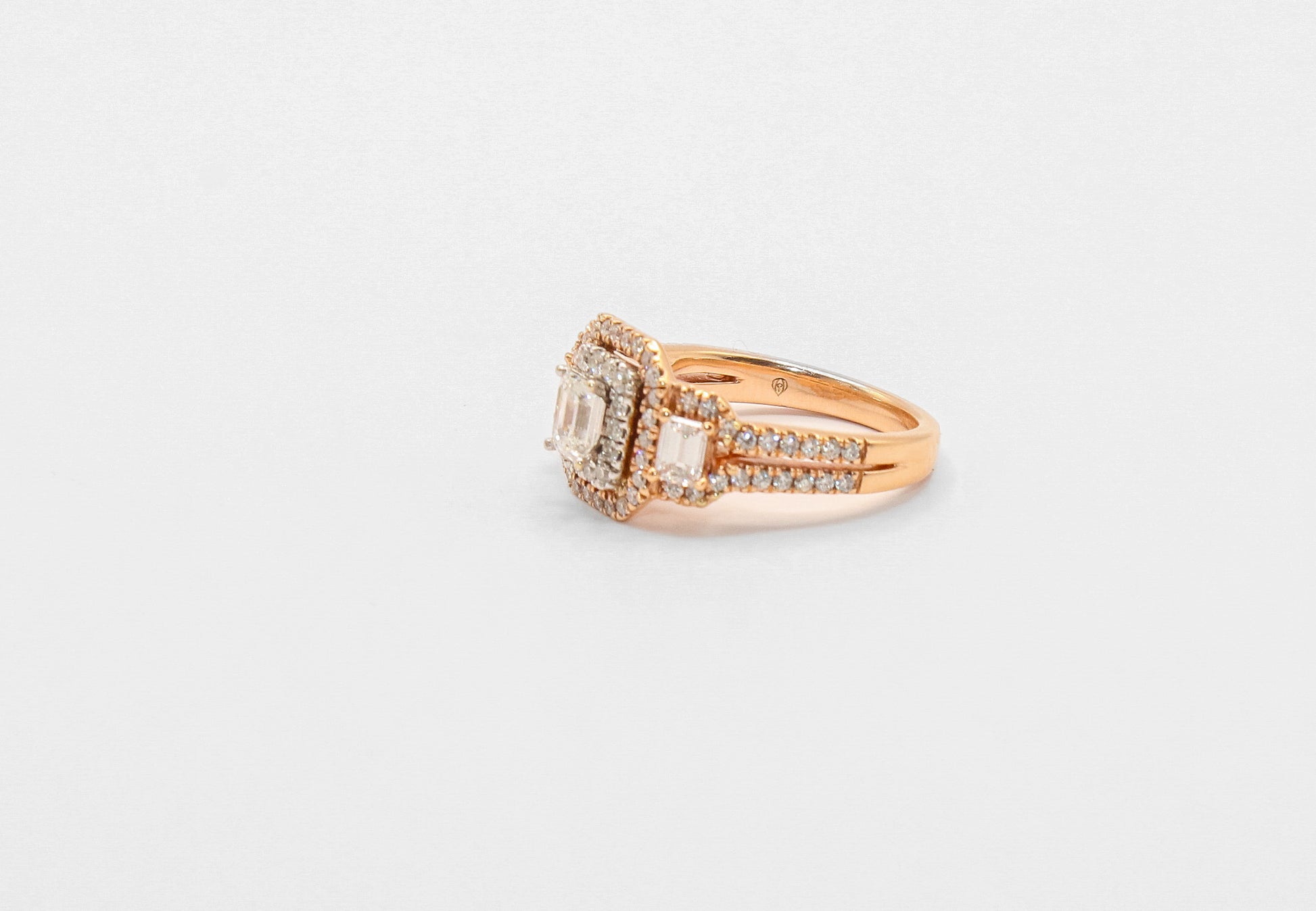 14K Rose Gold Emerald Cut Diamond Engagement Ring Set