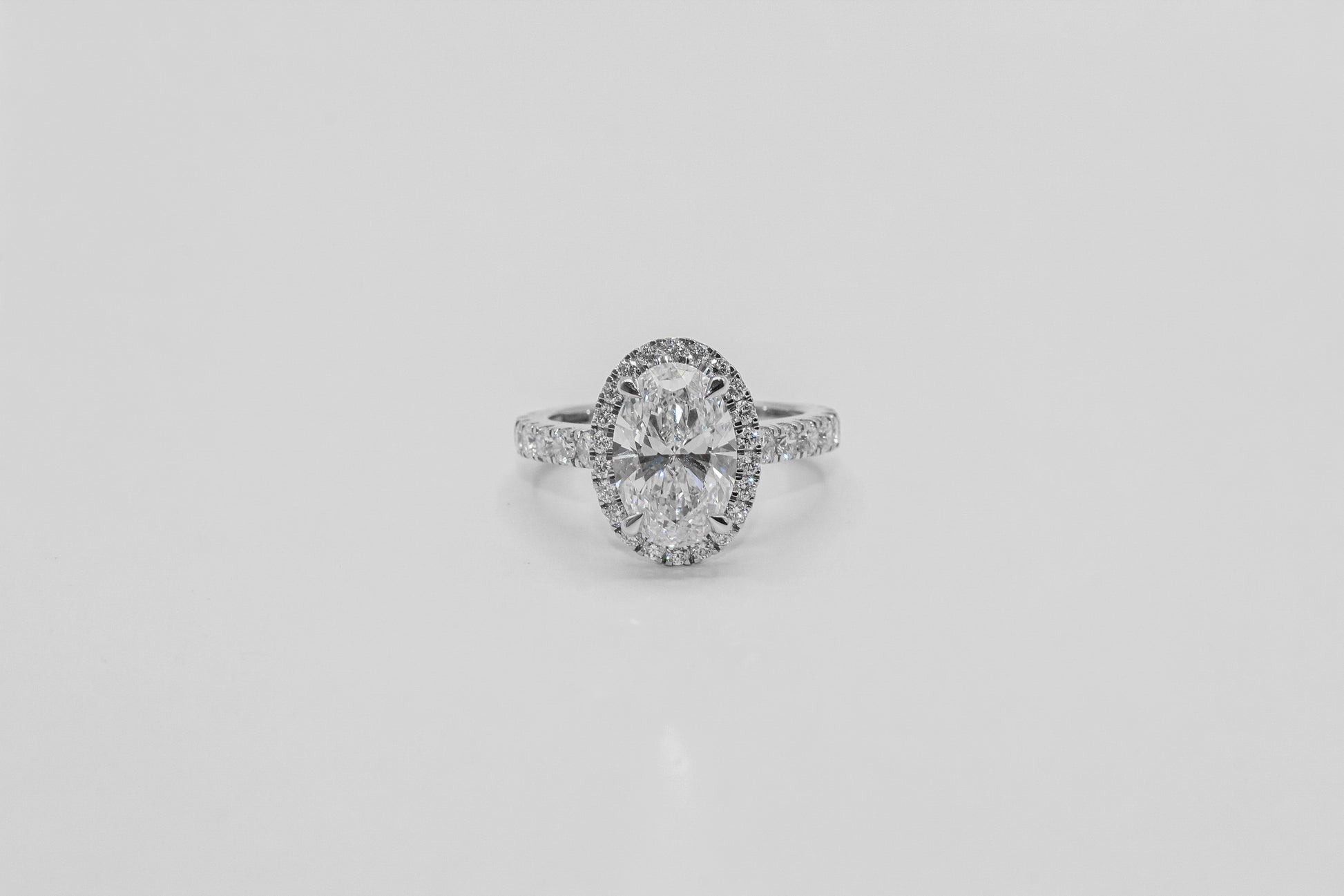 14K White Gold 2.57 Carat Oval Halo Diamond Ring