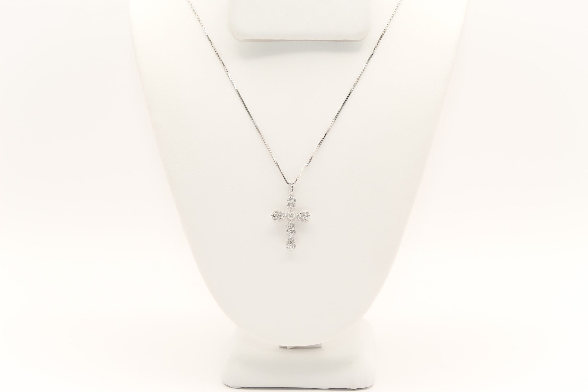 14K White Gold Diamond Cross Necklace