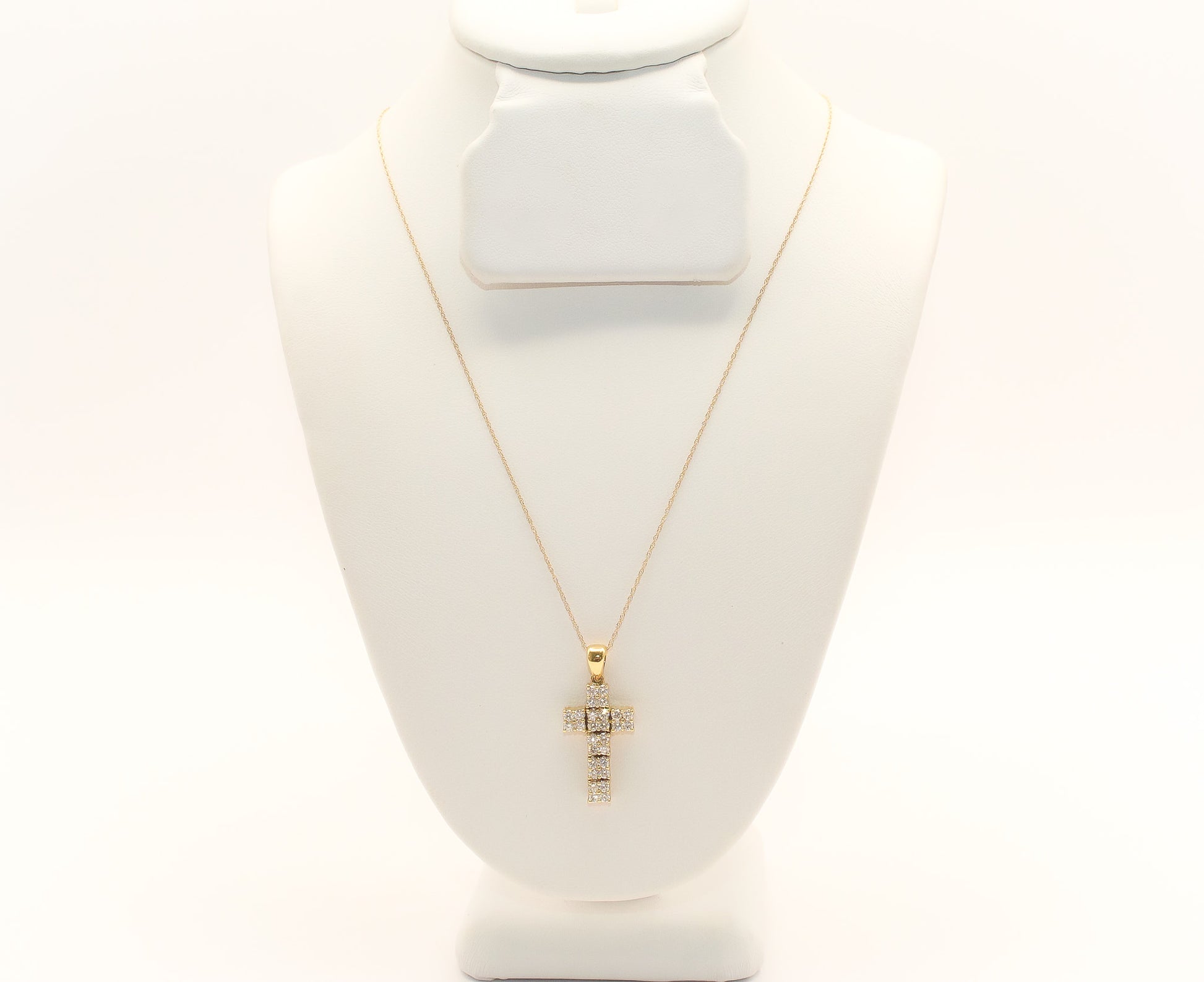 - This exquisite piece is not only a symbol of faith but also a timeless and sophisticated accessory that can be worn on various occasions. Whether you wear it as an expression of your beliefs or as a symbol of beauty, our 18k Gold Diamond Cross Necklace with a 0.77-carat diamond and an 18-inch gold chain is a cherished item that will accompany you through life’s significant moments.
