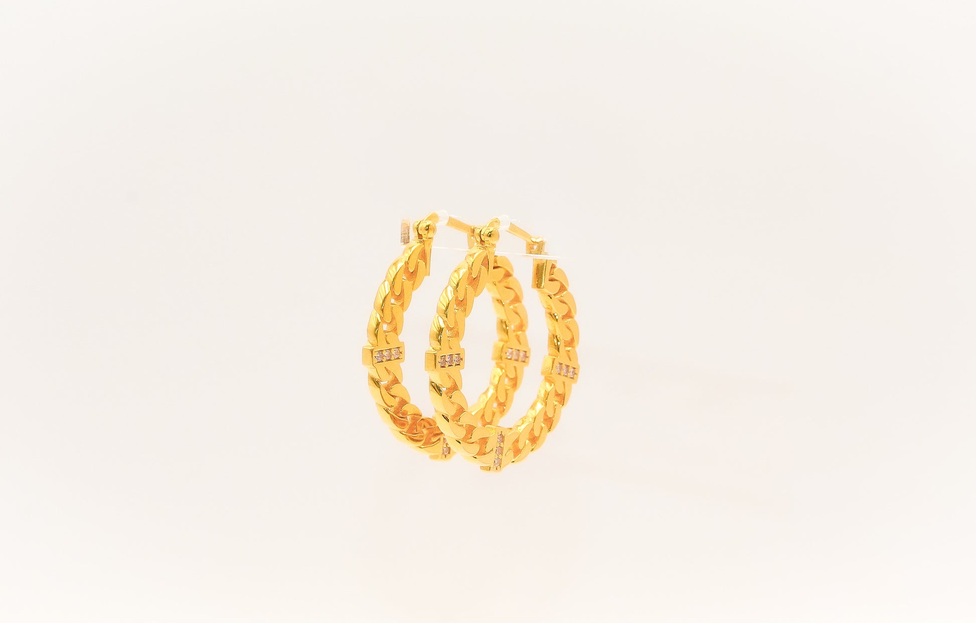 21K Gold Cuban Link Hoop Earrings