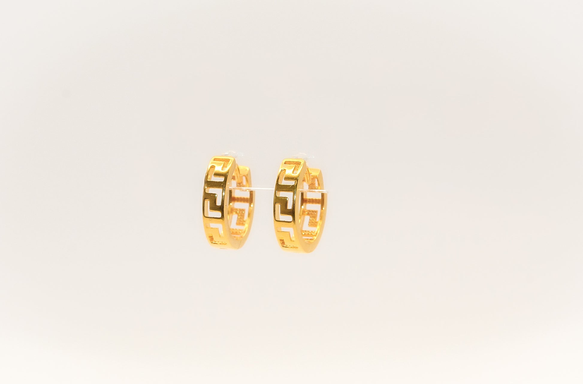 21K Gold Greek Key Mini Huggies Earrings