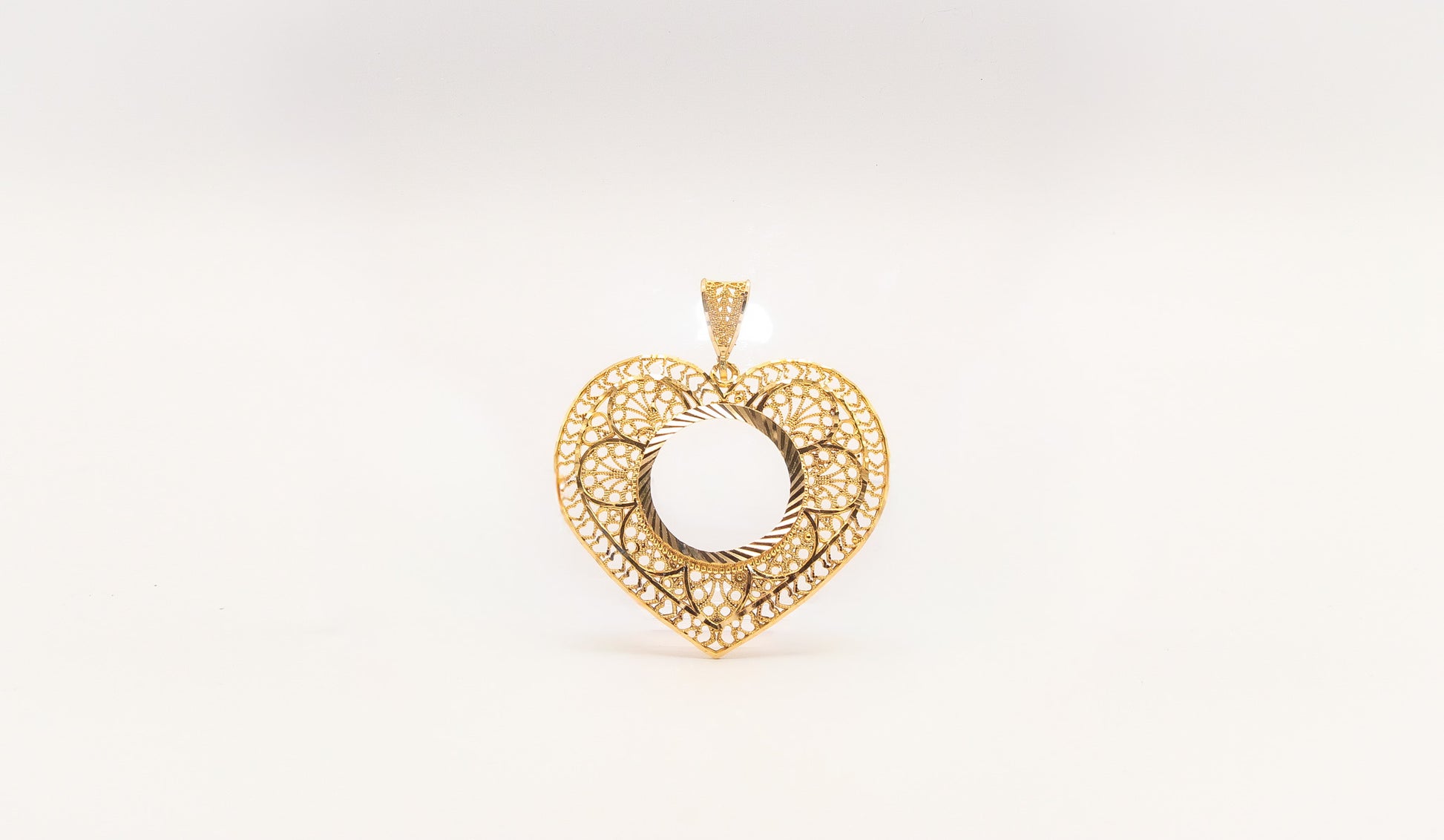 21K Gold Heart Coin Frame Pendant